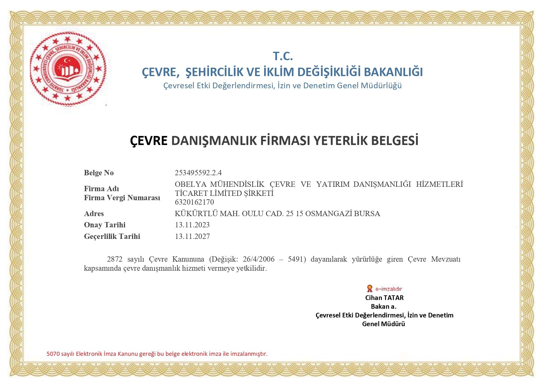 ÇEVRE DENETİM YETERLİK BELGESİ